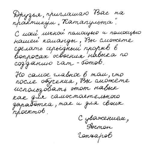 Посмотрите на схему чат-бота, вы такой создадите самостоятельно, уже во время обучения